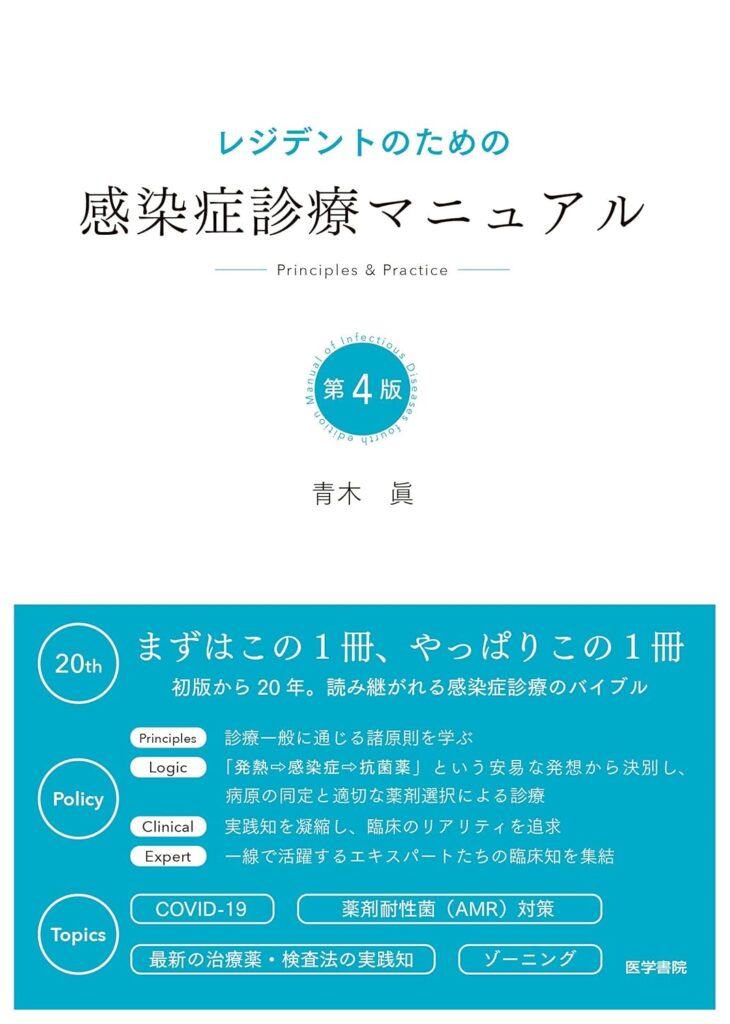 レジデントのための感染症診療マニュアル(青木本)は日常臨床の中での困った時に開く本ですが、こちらは原理原則や基礎を学ぶ、確認する意味合いが強いでしょうか。